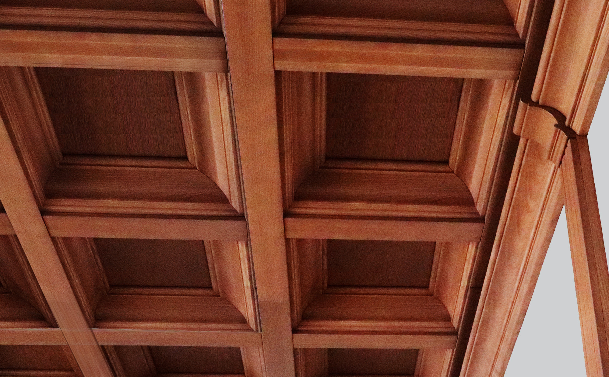 Наиболее аутентичный и статусный вариант — кессоны из натурального дерева. Их проектирование и изготовление обычно доверяют специализированным мастерским, которые работают с массивом на заказ (изготавливают лестницы, двери, мебель). Проект должен учитывать множество нюансов: расстановку мебели, расположение светильников, цвет и тип финишной отделки древесины. Крайне рекомендуется заказать пробный образец одного элемента, чтобы оценить высоту профиля и общее впечатление. Монтаж такого потолка — задача для профессионалов, так как он представляет собой сложную конструкцию из брусьев, панелей и балок, собранных в единую гармоничную композицию.