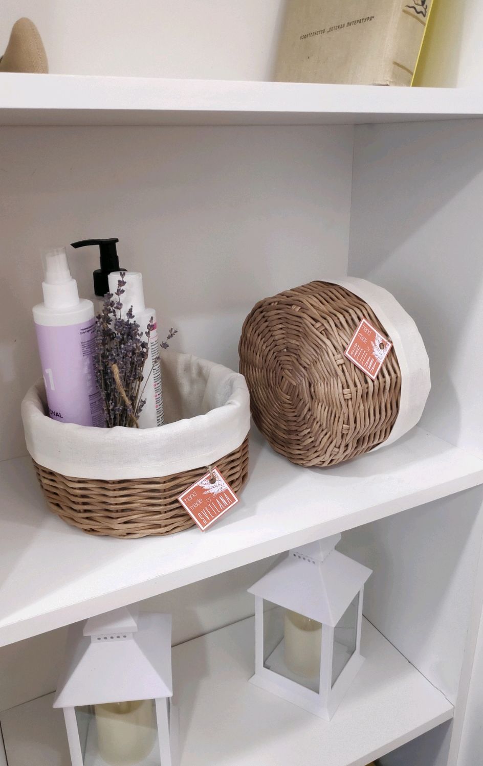 Кроме того, в ванной пригодятся корзинки разного размера для хранения банных принадлежностей. В них удобно разместить шампуни, мыло, полотенца и другие мелочи, чтобы полки всегда выглядели опрятно. Для зоны возле воды лучше выбирать влагостойкие материалы, например, пластик. Если же полки находятся в сухой зоне, можно смело использовать натуральные материалы — лозу или ротанг.