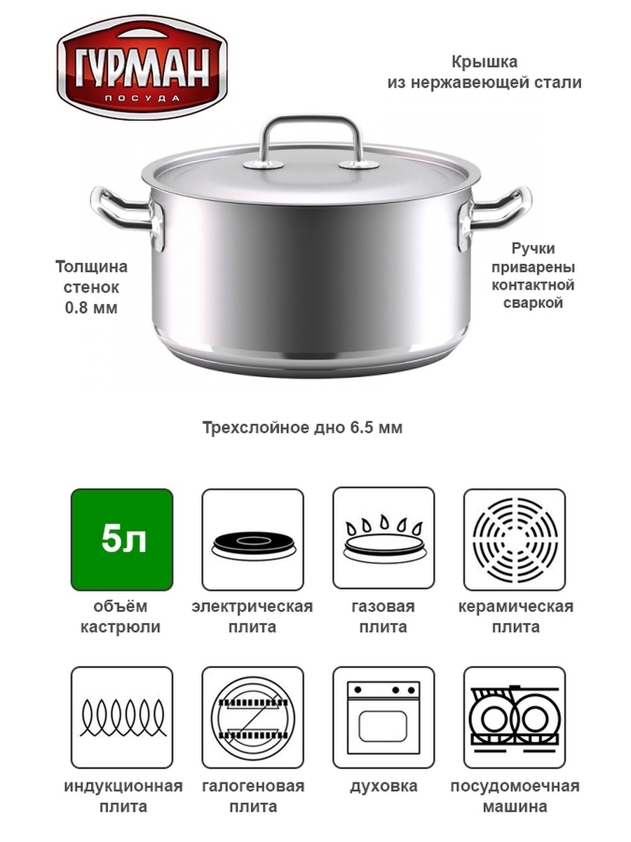 | Нержавеющая сталь | Алюминий (оставляет следы, деформируется, медленно нагревается) | Любая посуда с ферромагнитным дном | Алюминий |