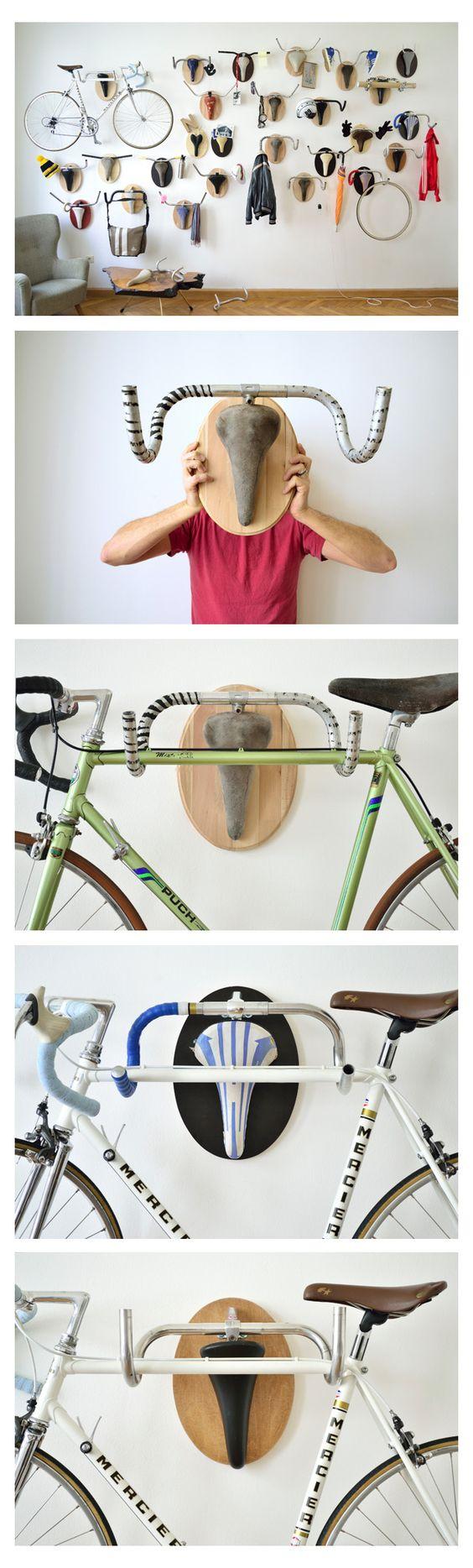 Остроумное решение — создать иллюзию, будто велосипед на полной скорости проезжает сквозь стену. Для этого переднюю часть с рулем и вилкой ровно отпиливают и монтируют на стену, добиваясь эффекта бесшовного соединения. На руль вешают плетеную корзину, которая становится удобным хранилищем. На кухне в ней можно держать прихватки, в прихожей — перчатки и ключи, в ванной — полотенца, а в детской — мелкие игрушки.