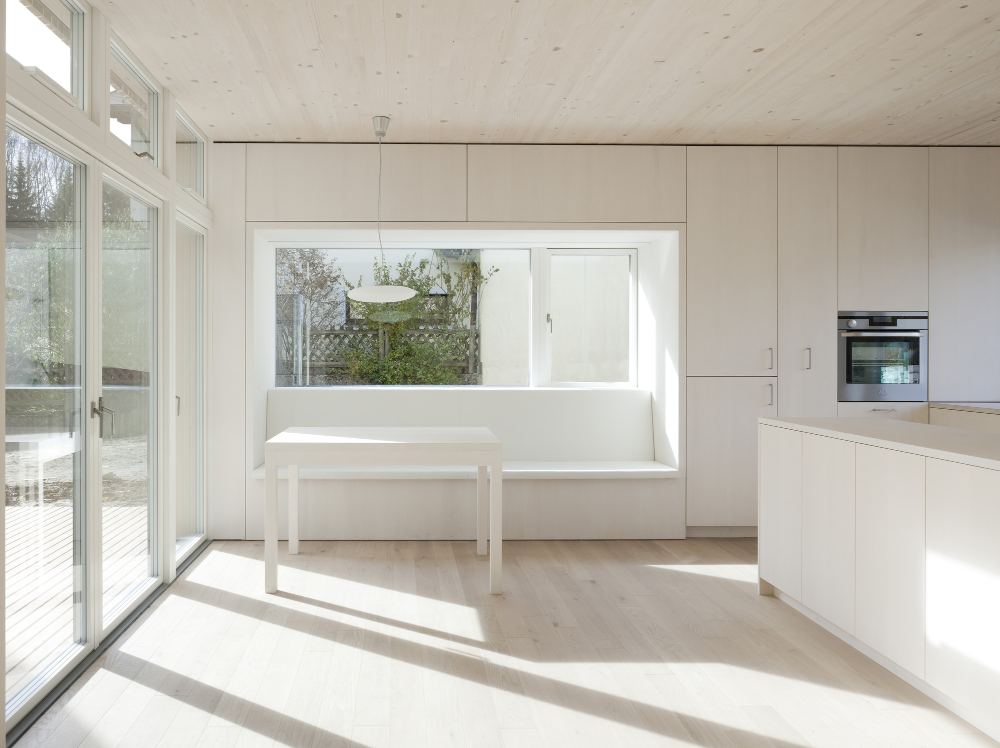 Это одна из двух резиденций в стране, сделанная из кросс-ламинированной древесины (CLT), исключительно прочного древесного материала, полученного путем склеивания слоев пиломатериалов, которые чередуются в одном направлении. Давний исследовательский проект по типологиям кровли, найденных на американском Юге. В попытке переработать пространственные парадигмы прошлого, такие как свободный план Ле Корбюзье и Адольф Лоз, MALL предлагает план крыши как способ организации архитектуры. Здесь план крыши устанавливает комнаты, подиумы и пространства двойной высоты во внутреннем пространстве, выравнивая эти пространства с выступами и впадинами на крыше сверху. В этом случае план этажа является результатом проекции крыши. С бокового вида асимметричная и незнакомая форма заменяет традиционный фронтальный дом, как если бы обычная форма была обрезана. Странные профили появляются на всех четырех высотах, когда шесть двускатных крыш вырезаются по периметру массива. Другие незначительные изменения включают в себя уклоны крыши, которые намного круче, чем те, которые содержатся в принятых отраслевых стандартах. Дом, расположенный на участке шириной 24 фута, имеет ширину 18 футов, такого же размера, как и мобильный дом одинарной ширины. Нехарактерно тонкий дом генерирует идеи для применимости плана для более плотной городской среды. Все наружные и внутренние стены, полы и крыша изготовлены из цельных панелей из перекрестной ламинированной древесины (CLT), материала, широко используемого в строительстве за рубежом, но не имеющего аналогов на рынке США. Изготовленный на заказ, поднятый на место и собранный за четырнадцать дней, Haus Gables позволяет создать прочный дом, избегая изготовления каркасных конструкций.