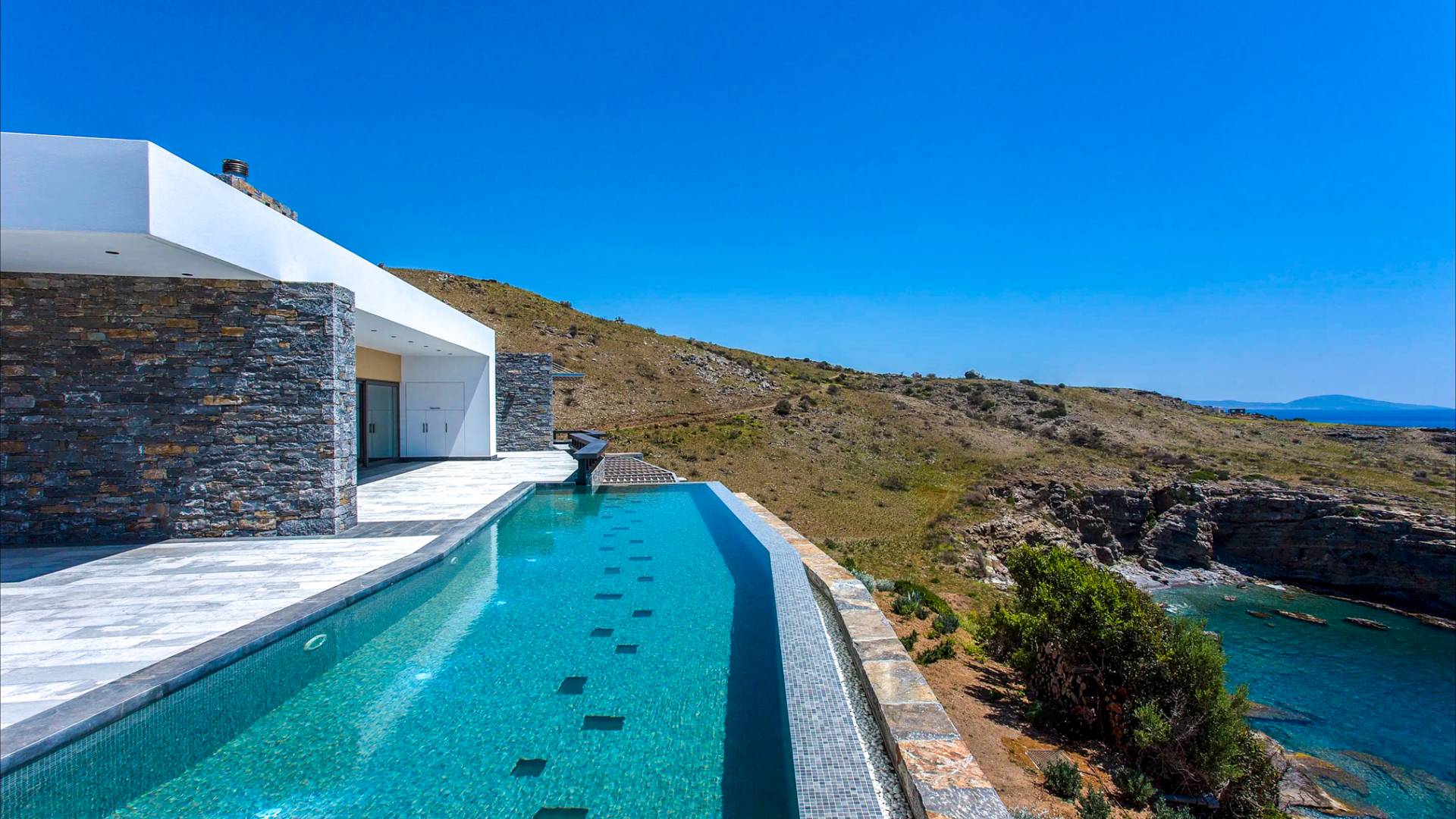 Проект этой великолепной каменной виллы был разработан международным архитектурным бюро STUDIORESKOS, которое имеет офисы в Афинах и Лондоне. Благодаря тщательно продуманному дизайну и искусной работе декораторов, дом стал воплощением роскоши и вдохновения. Каждая деталь интерьера и экстерьера была продумана до мелочей, что создает целостный и гармоничный образ.