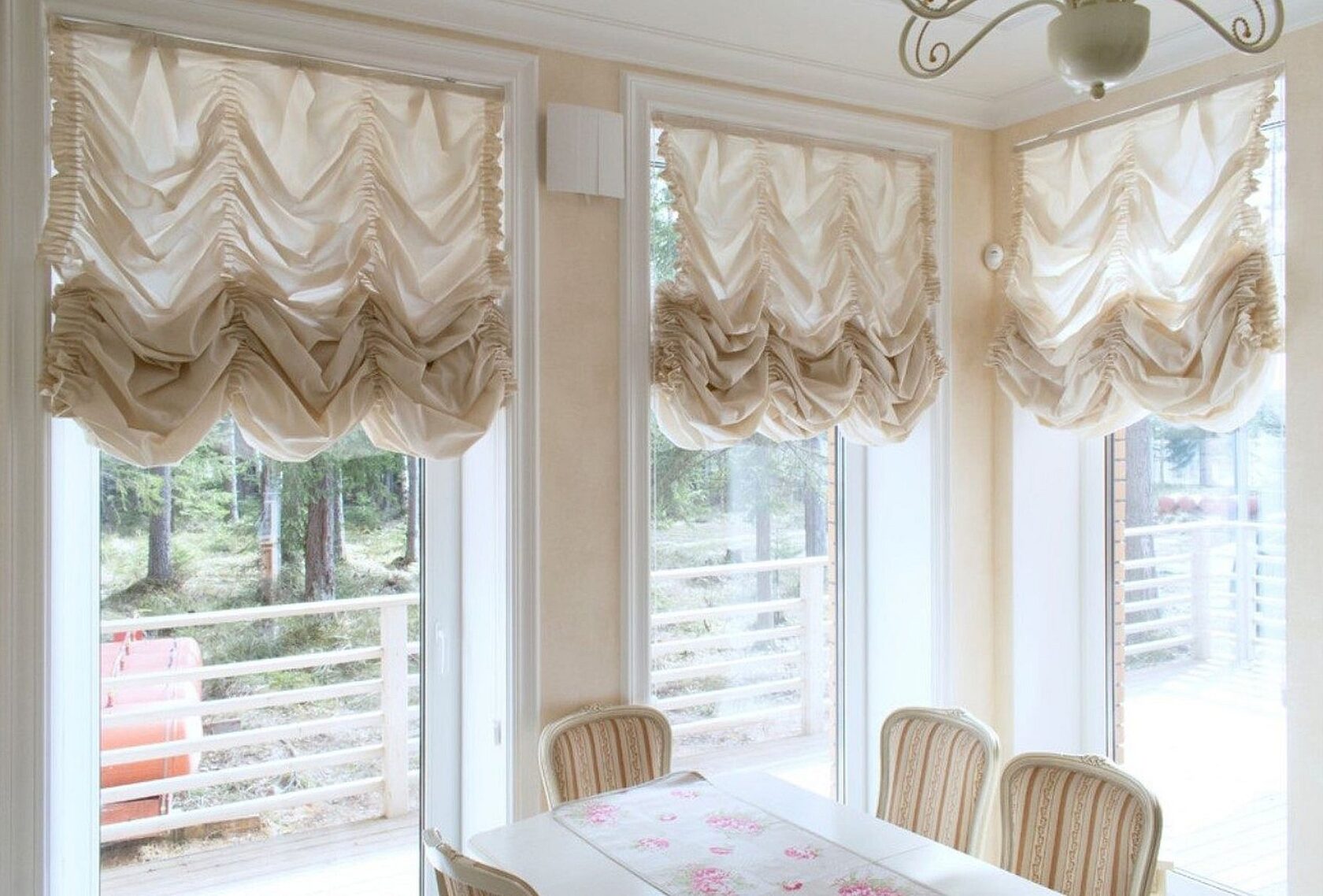 Причем они должны быть такой плотности, чтобы удерживать форму складок. Лучше всего с этой целью применять материалы, которые состоят из смеси натуральных волокон с синтетикой. Но для кухонных помещений предпочтительны ткани с содержанием синтетики: они легче отстирываются и дольше служат.