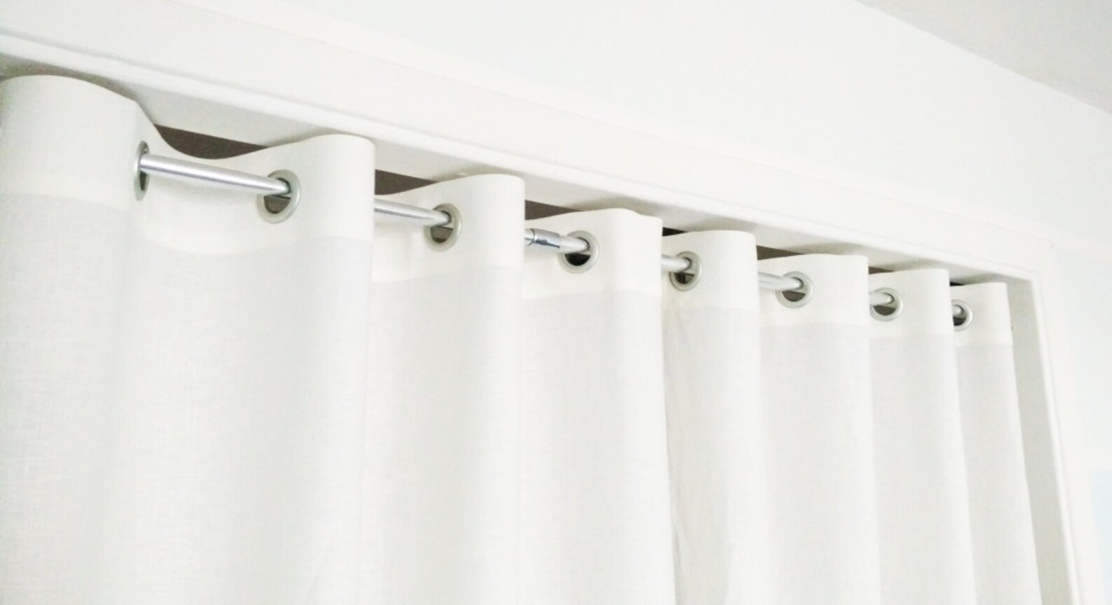 Занавеску с люверсами можно купить в магазине или вставить крепления в самостоятельно сшитую штору.