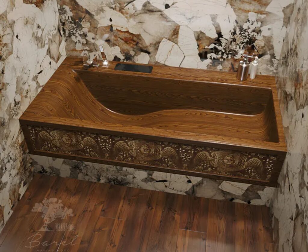 Дерево — материал, проверенный временем и отлично сочетающийся с водой, что доказывает многовековая традиция использования бочек для хранения вина, солений и других продуктов. Однако для создания ванны требуется особая, тщательная обработка древесины. Например, дуб для таких целей иногда годами вымачивают, чтобы волокна стали невероятно прочными и устойчивыми. Такой материал — дорогое удовольствие, что подчёркивает эксклюзивность готового изделия.