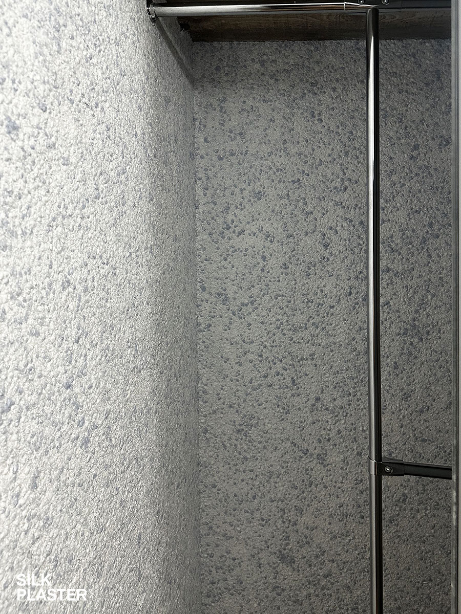 Поверхность, отделанная жидкими обоями, не портится от прямого попадания воды и пара. За ней легко ухаживать — достаточно периодически протирать стены мягкой губкой с мыльным раствором. Визуально такая отделка создает эффект благородной шероховатой текстуры, напоминающей каменное покрытие, что добавляет интерьеру индивидуальности и стиля.