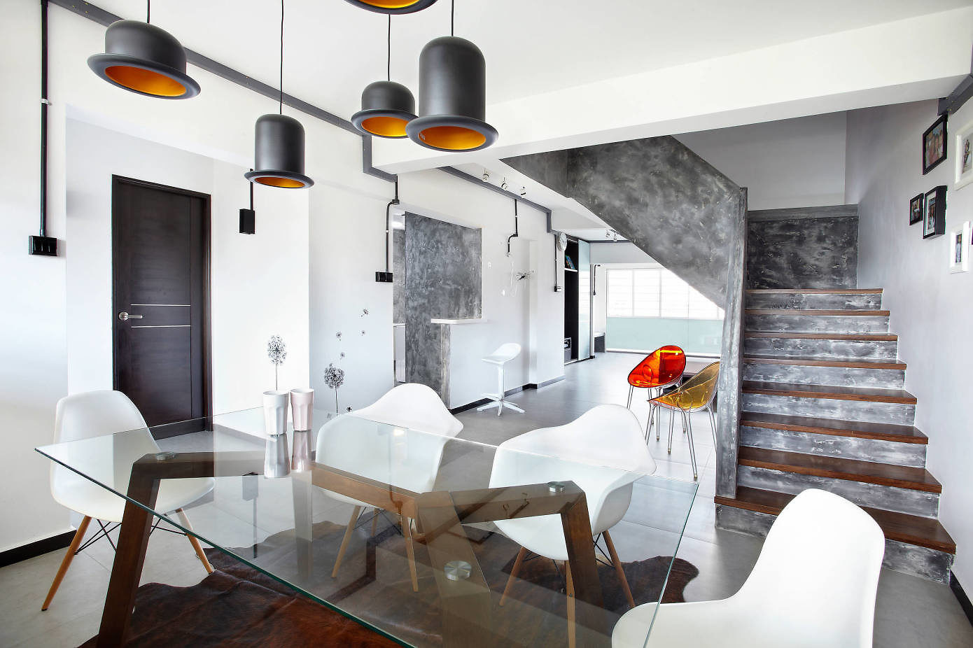Двухэтажная квартира в стиле минимализм с яркими сочными элементами декора