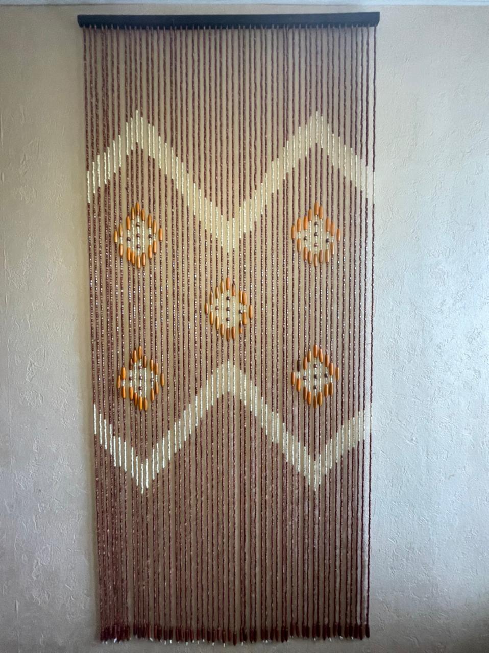 Вьетнамские вертикальные бамбуковые шторы на дверной проем никак не ограничивают свободу перемещения по дому. Друг от друга они могут отличаться толщиной нитей, их плотностью. При желании шторки можно фиксировать по бокам или центру с помощью лент или петель.