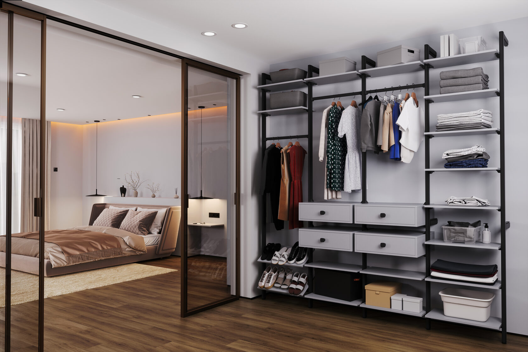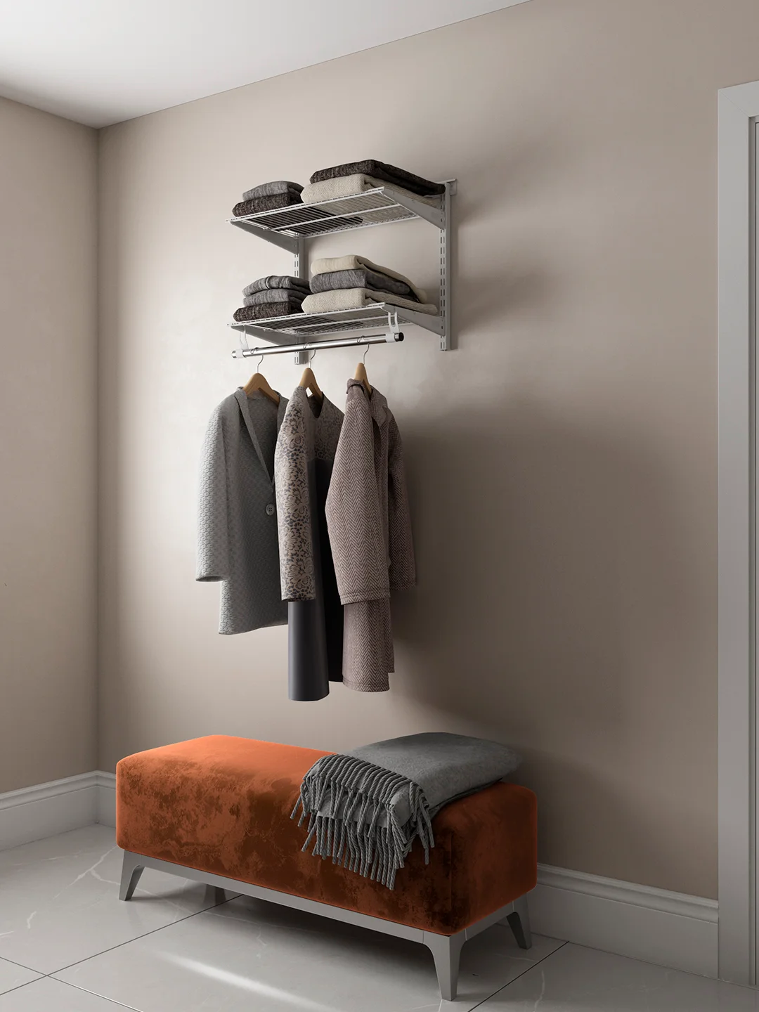 Модульные системы хранения вещей для гардеробной комнаты являются наиболее рациональным способом организовать пространство, расположив на нем все необходимое в свободном доступе и идеальном порядке. Чаще всего в гардеробной используются встроенные системы хранения с креплением к стене. Наиболее востребованный тип — сетчатая система, все элементы которой металлические, легко крепятся и снимаются, двигаясь по направляющим.