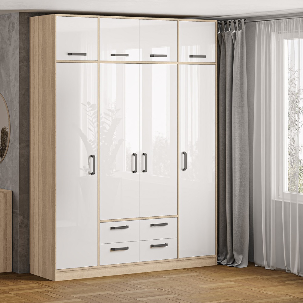 В современных шкафах дверцы могут быть оформлены разнообразными вставками. Например, скандинавский вариант предполагает стеклянные вставки, сквозь которые видно аккуратно уложенное в красивые стопки белье. Впрочем, стекло можно сделать и матовым – это смотрится элегантно и не требует столь строгого порядка. Деревянные массивные дверцы украшают резьбой или росписью, а современные модели – фотопечатью или ламинированием.