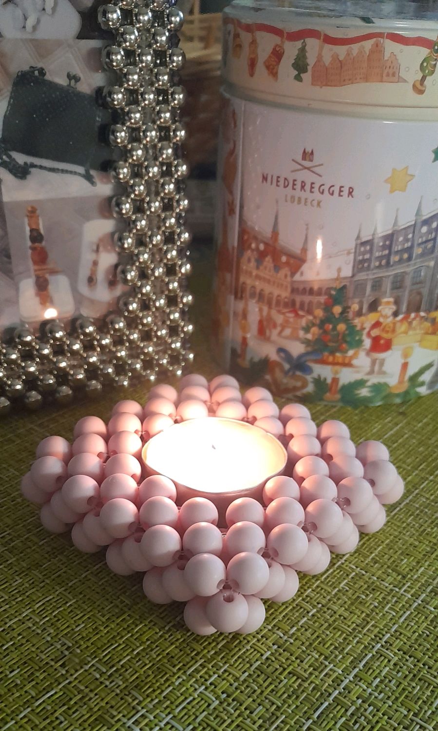 – Стеклянный подсвечник зеленого цвета (основа)