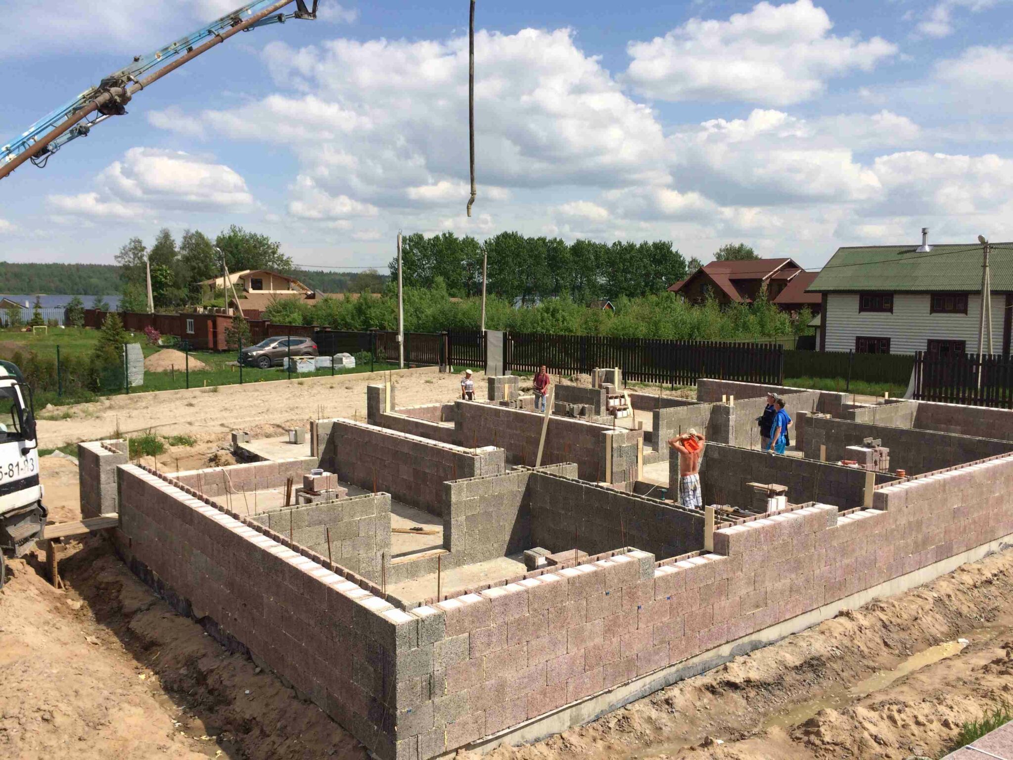 Наружные и внутренние стены возводятся одновременно, чтобы распределить нагрузку на фундамент. Строительство стен планируют таким образом, чтобы полностью завершить в течение сезона. Материалы для устройства стен рассматривался чуть выше.