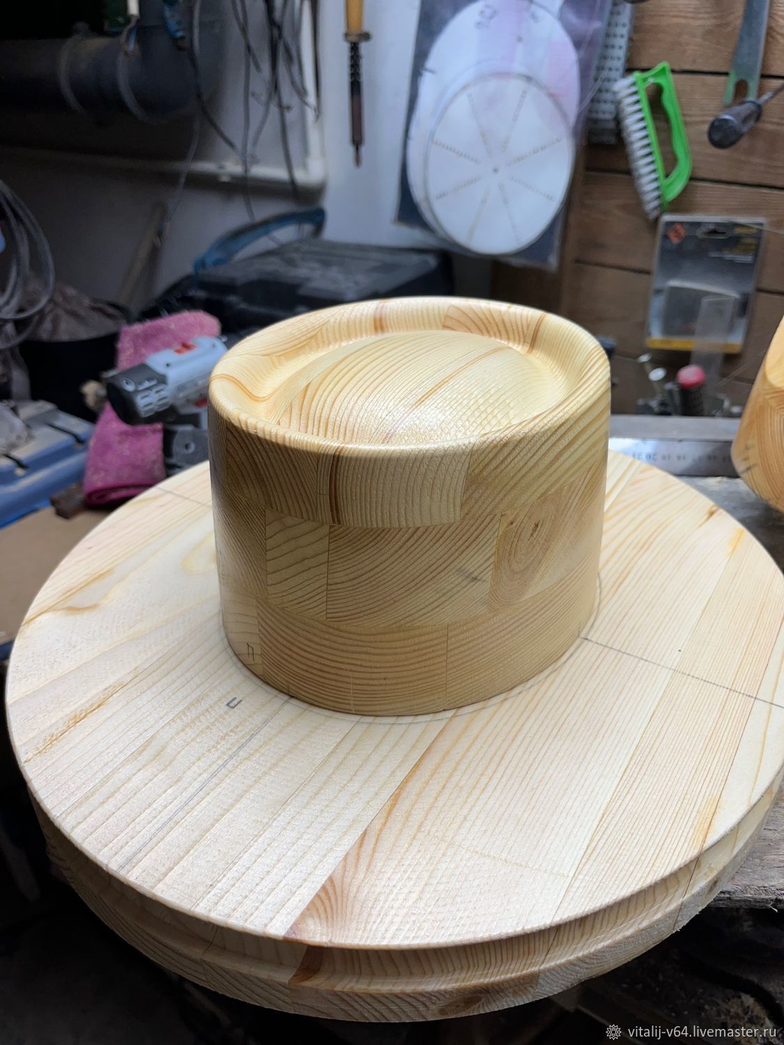 Вот и все! У вас получилась универсальная болванка «тумба», на которой можно формовать тульи любой высоты. Этот метод позволяет создавать формы любого нужного вам размера, экономя бюджет и расширяя творческие возможности.