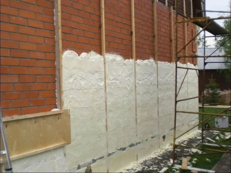 Полиуретановая пена для утепления стен является теплоизоляционным материалом для профессионалов. Так как он двухкомпонентный и состоит из изоционата и полиола. Вспенивание происходит как раз за счет реакции этих двух компонентов. Стена перед нанесением пенной теплоизоляции практически не нуждается в подготовке, нужно только правильно дозировать количество наносимой пены.