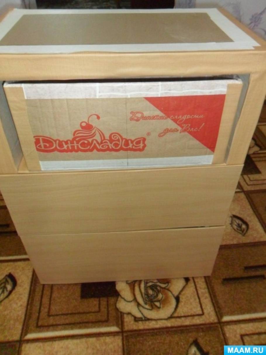4. Изготовление ящиков: Сделайте выдвижные ящики из картонных коробок, тщательно выверяя размеры. Для прочности оклейте их внутренние стенки дополнительным слоем картона.