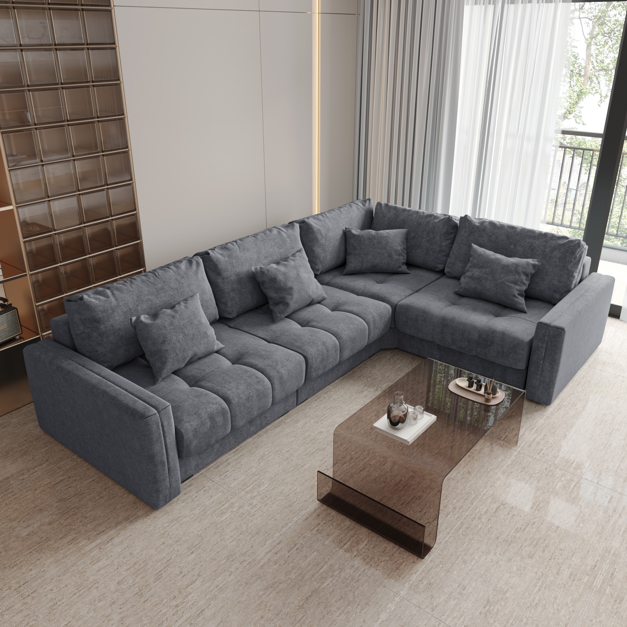 Для больших гостиных отлично подходят П-образные диваны. Они очень вместительные и комфортные, создавая максимум пространства для общения. Также популярны модели со скругленным углом, которые выглядят более мягко и могут стать яркой дизайнерской деталью.