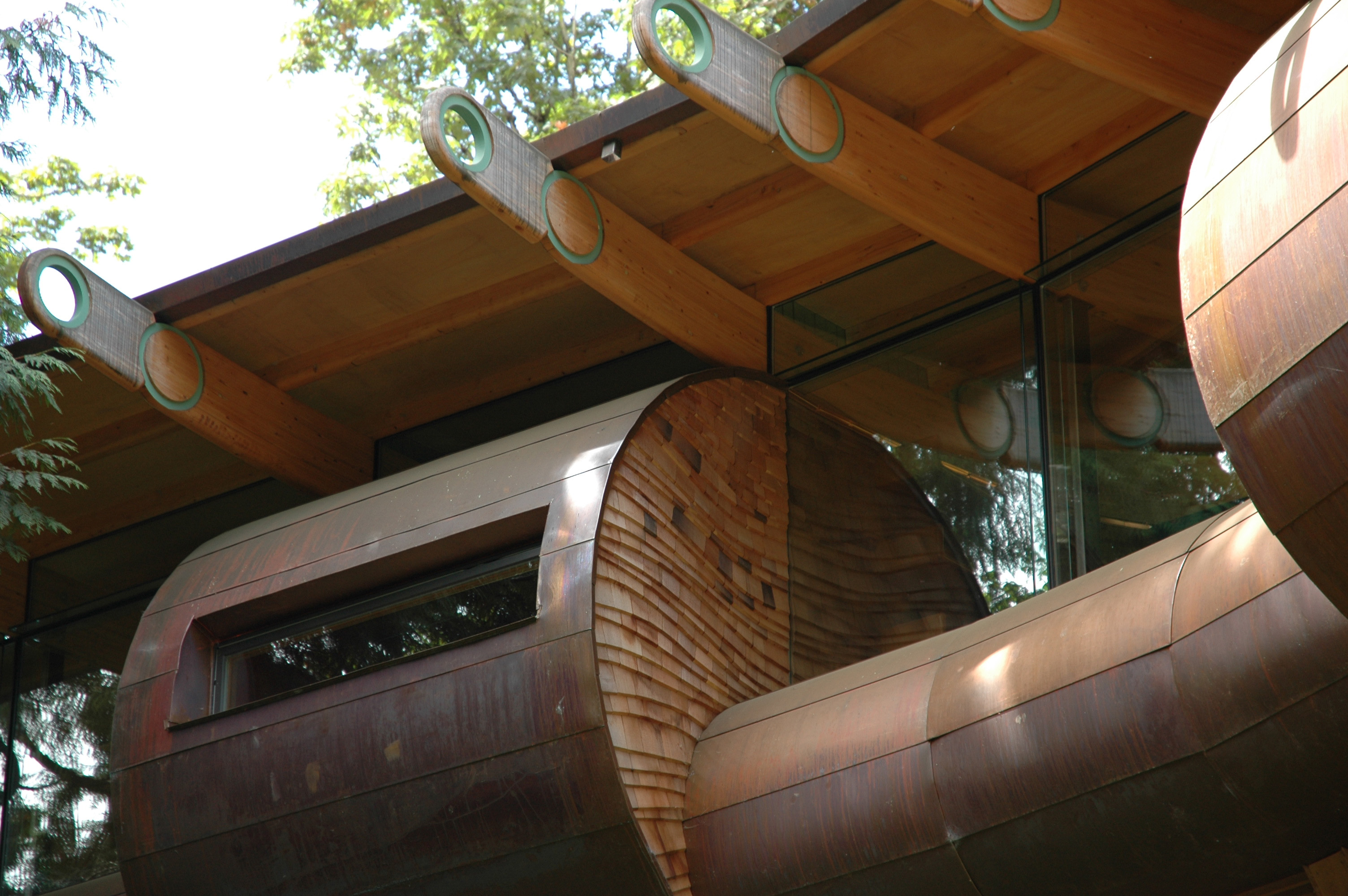 В 1997 году архитектор Роберт Харви Ошатц задумал проект, который должен был стать не просто зданием, а органичным продолжением окружающего ландшафта. К 2004 году его видение воплотилось в жизнь — в лесах под Портлендом появился Wilkinson Residence, названный в честь своего владельца. Этот дом — яркий пример биомимикрии в архитектуре, где человеческое жилище не противостоит природе, а сливается с ней в единое целое.