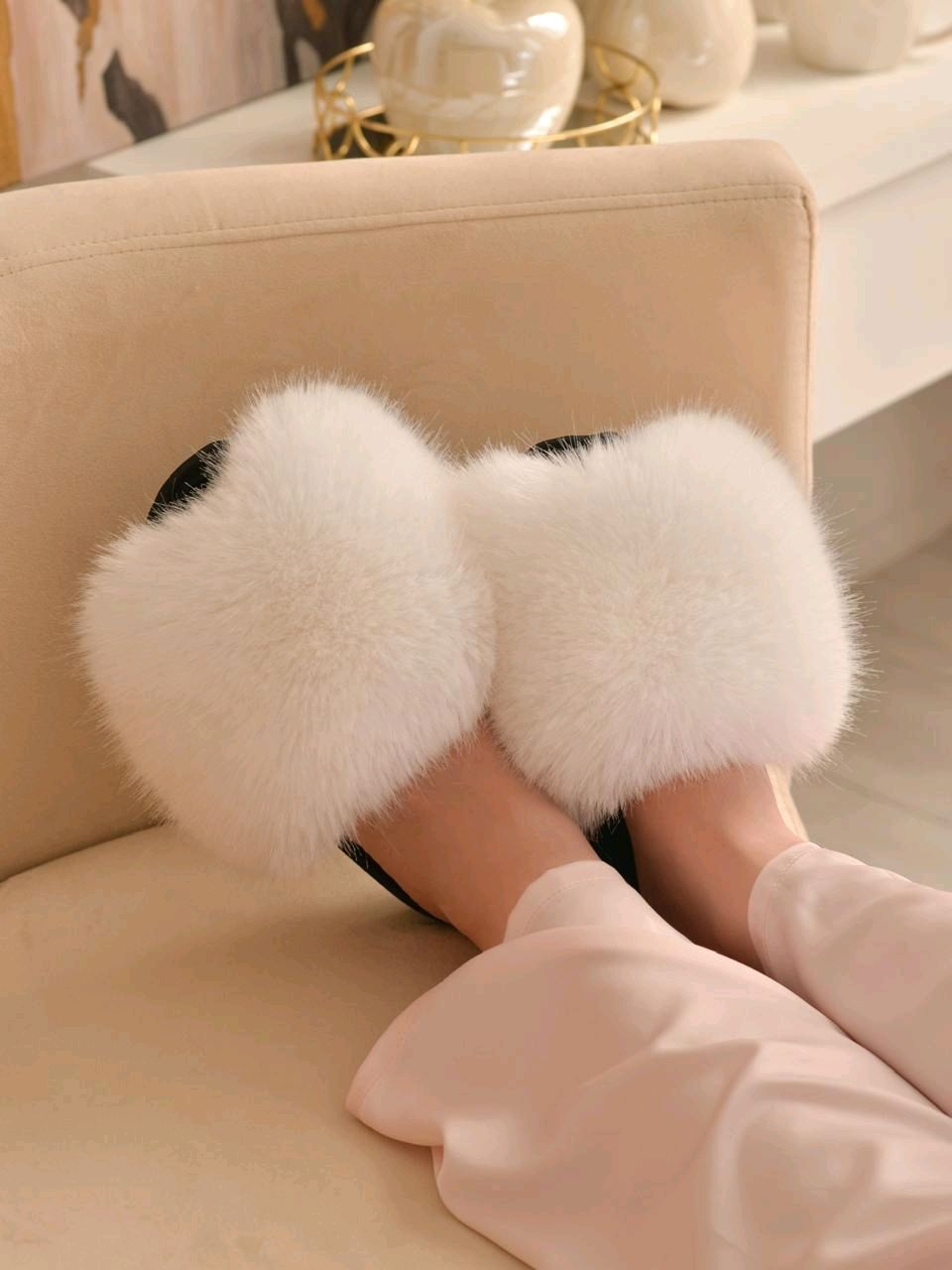Тапочки из меха — символ тепла и домашнего комфорта в фото