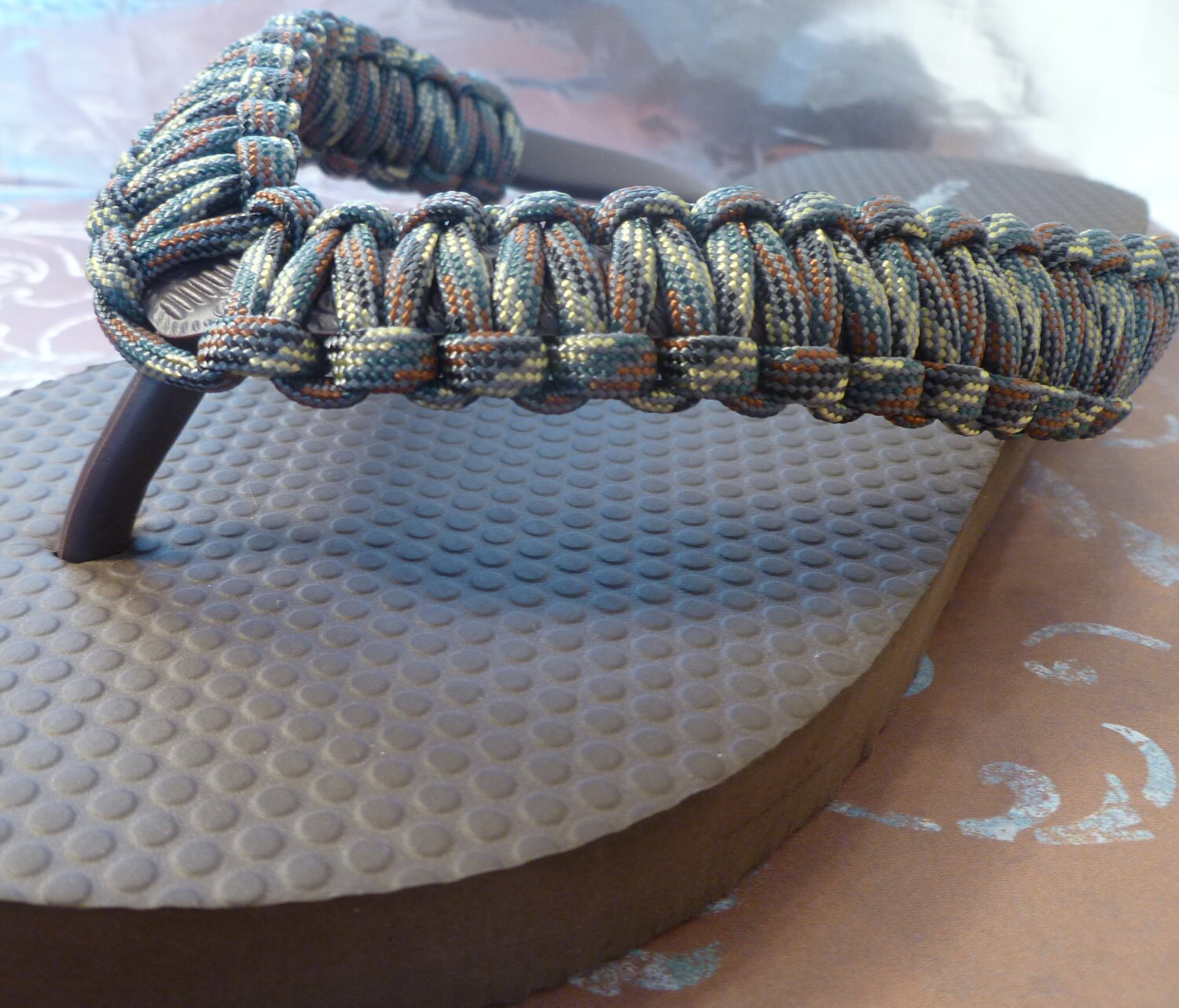 Ранее я опубликовал несколько материалов на тему плетения паракордом, в которых приводились методы плетения браслетов, поясов, чехлов и т.п. Данная статья первая в своем роде, поскольку посвящена обуви (в данном примере, скорее, женской обуви). Используя подошву от старых затертых сандалей и 25-30м паракорда, можно без особого труда превратить безнадежно устаревшую обувь в неповторимую hand-made вещь.