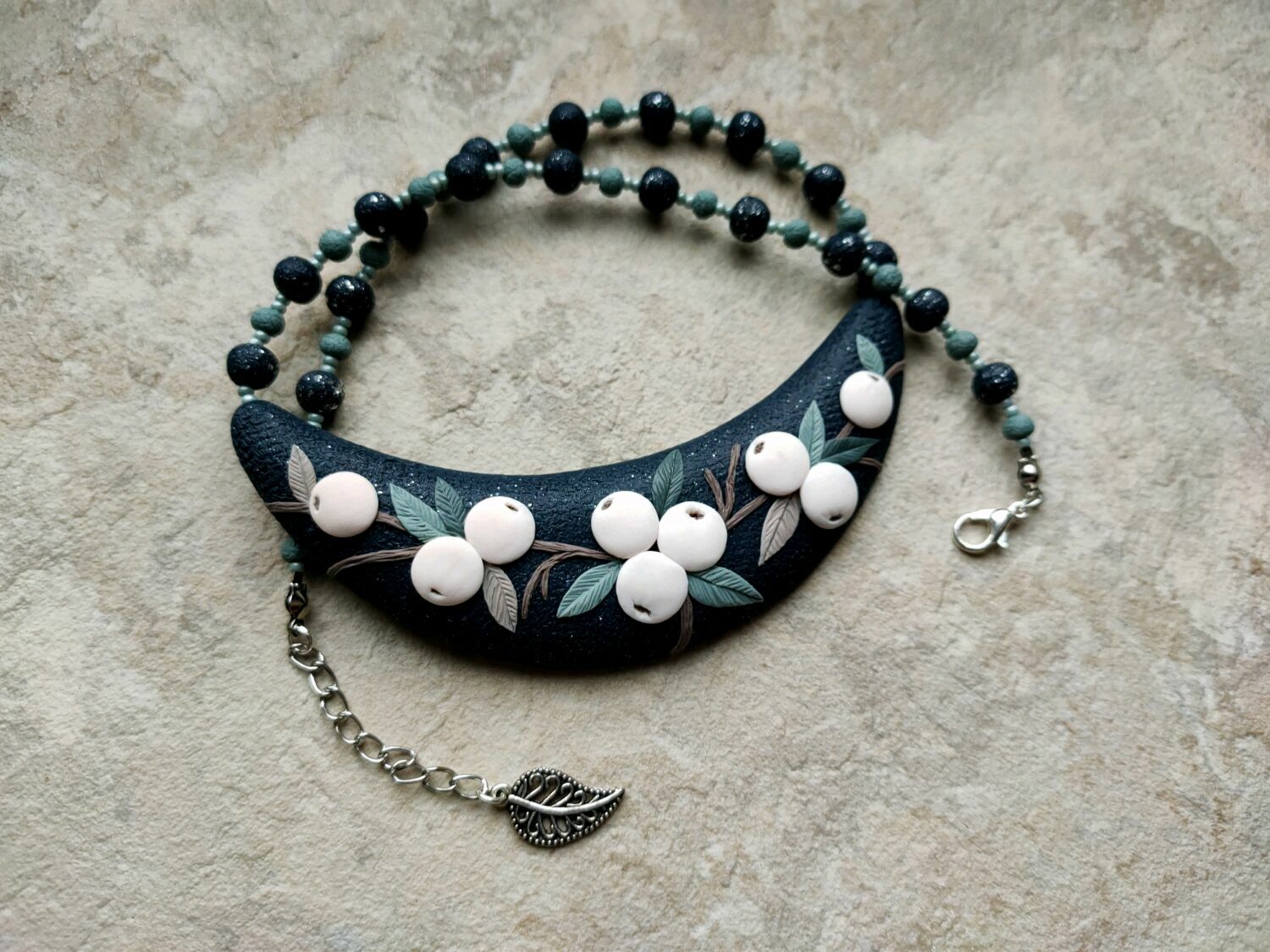 С помощью акриловой краски нанесите краску, выделяя глаза и нос. Таким же образом сделайте необходимое количество «черепков» для вашего ожерелья. Когда все будет готово, можно покрыть изделия специальным лаком, а после высыхания, чередуя с обычными бусинками, можно приступить в формировании ожерелья из полимерной глины.