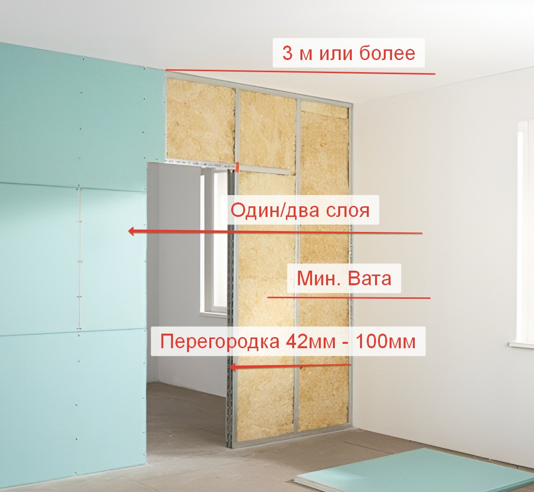 Но в том случае, если перегородка будет выполнять роль полноценной стены, в которую придется устанавливать дверь, то для возведения каркаса необходимо использовать профиля толщиною .