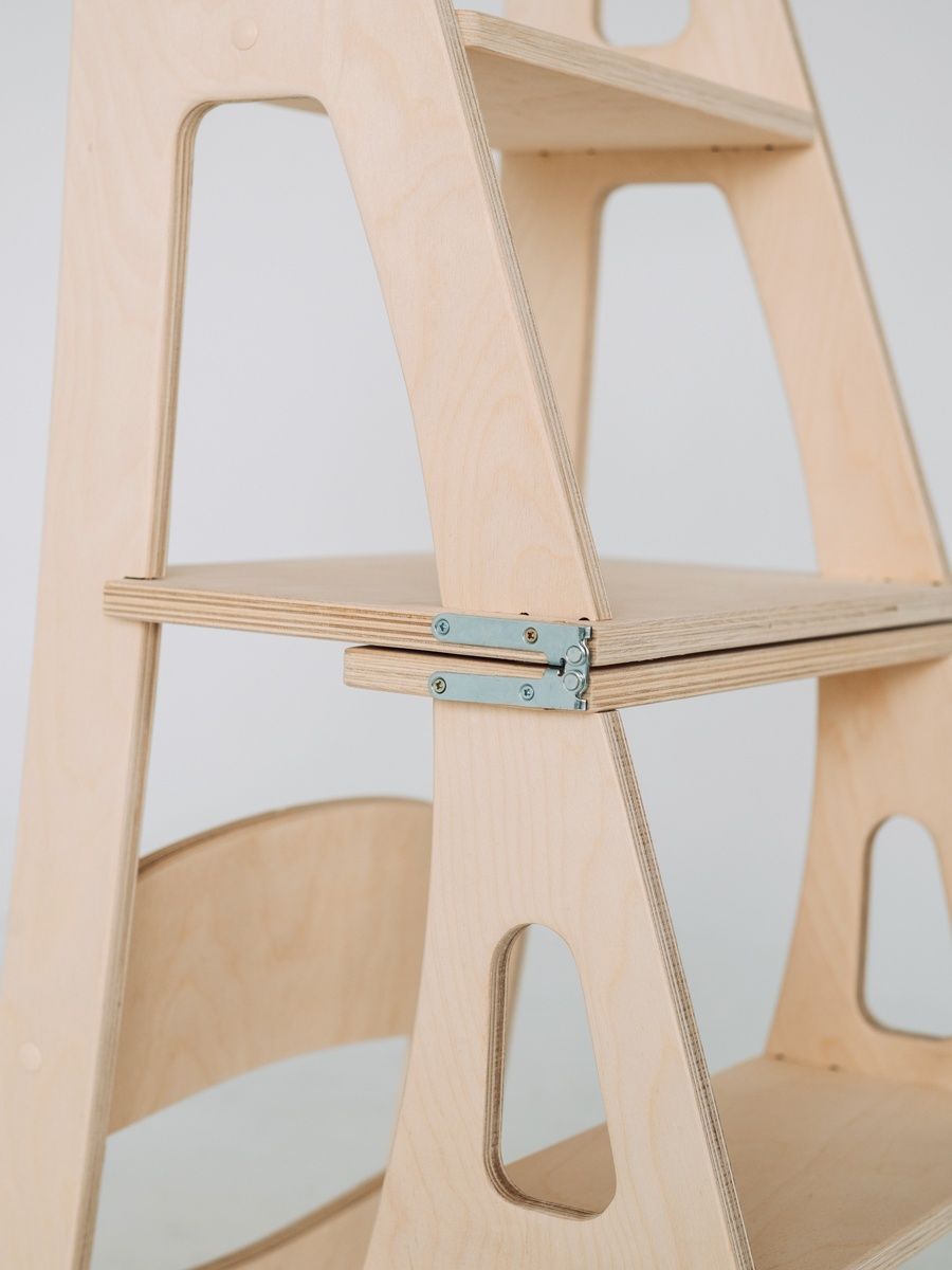 Разные компании показывают модели, отличающиеся формой и количеством ступеней. Они безопасны и удобны в использовании. А различие оттенков позволяет подобрать табурет по своему вкусу. В случае необходимости предмет легко убрать в кладовку, так как занимает немного места. Значительно меньше, чем стандартная стремянка.