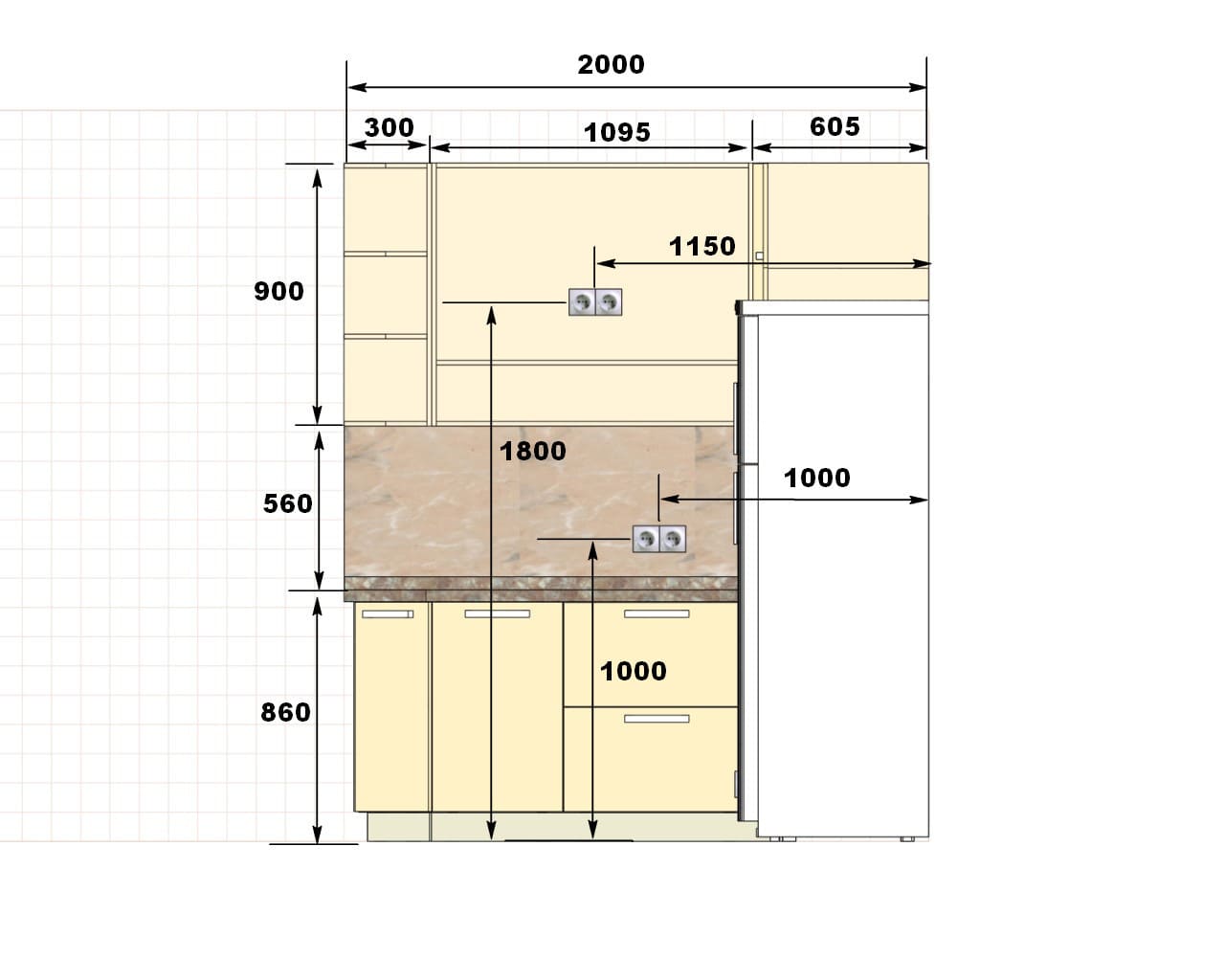Схема размещения розеток на кухне