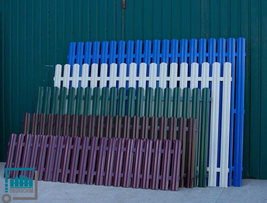 Длина стандартных панелей (секций) составляет от 150 до 230 см. К столбам они крепятся с помощью металлических скоб или кронштейнов. Пустотелая конструкция профиля обеспечивает оптимальное сочетание легкости и прочности. Лицевая сторона часто имеет декоративное тиснение. При необходимости штакетник легко режется, а срезы маскируются специальными заглушками.