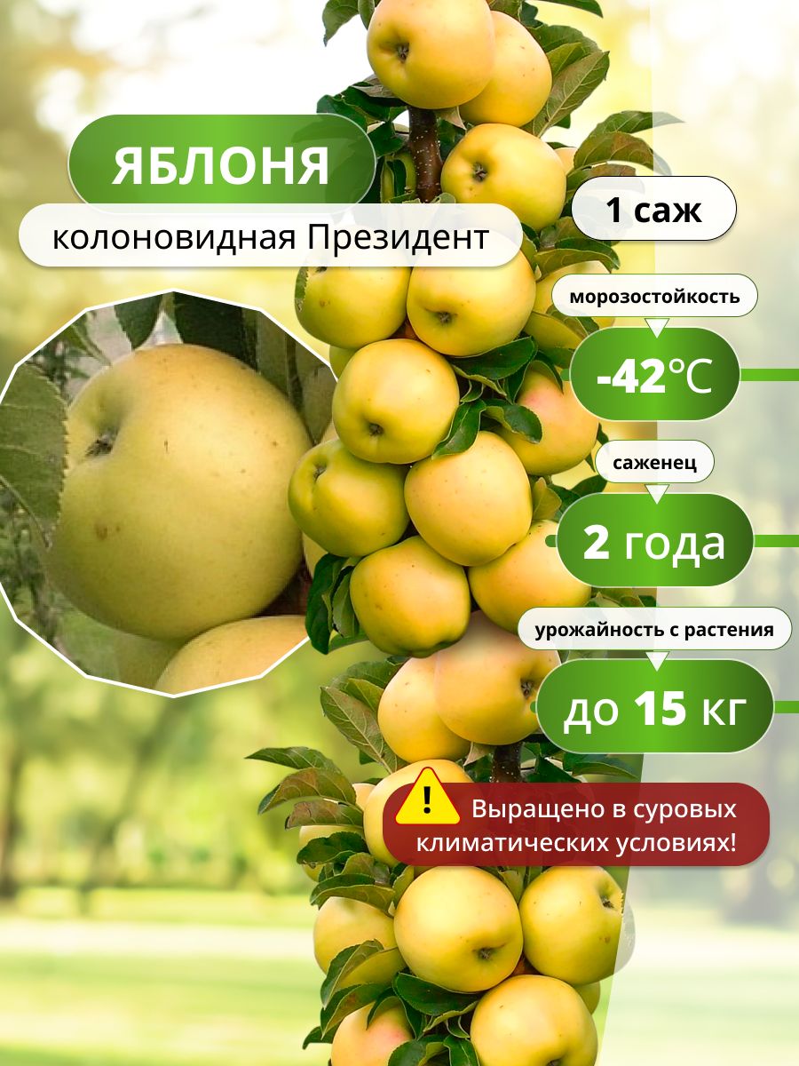 Как и многие колоновидные сорта, «Президент» может дать первый урожай в год посадки. Пик урожайности наступает на 5-6 год. Дерево отличается регулярным плодоношением даже при неблагоприятных погодных условиях.