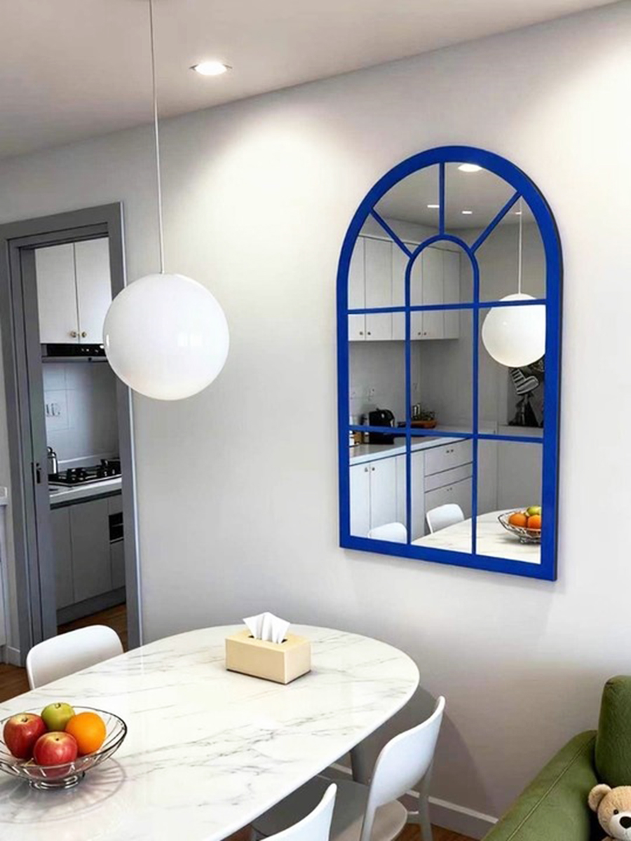 - Зеркальное окно: отличный способ зрительно увеличить пространство и исправить геометрию комнаты. Зеркало можно разделить на секции декоративными планками, имитирующими раму. Часто такой приём используют в ванных или прихожих.