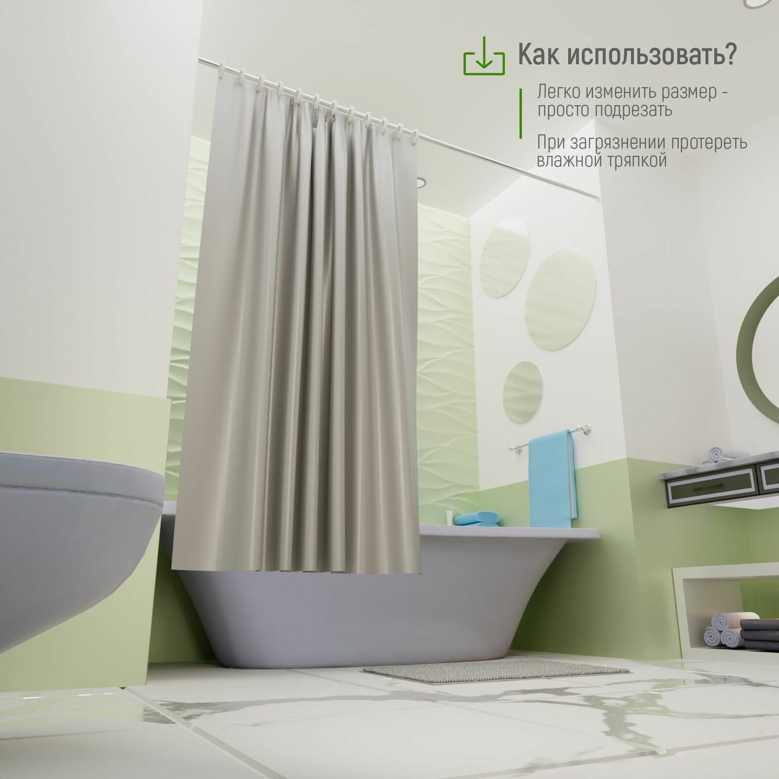Вывод: Полиэтилен — выбор для тех, кто любит часто менять обстановку. Для постоянного использования лучше подойдут тканевые или качественные виниловые (PEVA) шторы.