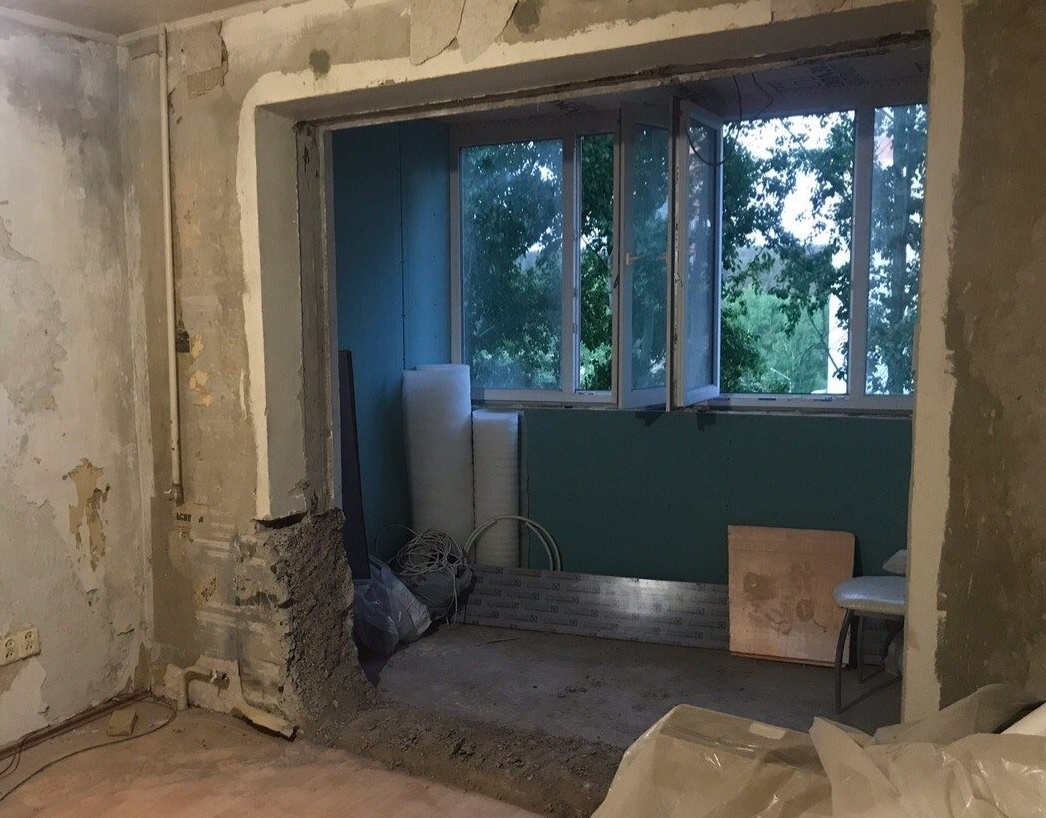 - В результате перепланировки удалили перегородку и увеличили гостиную и ванную